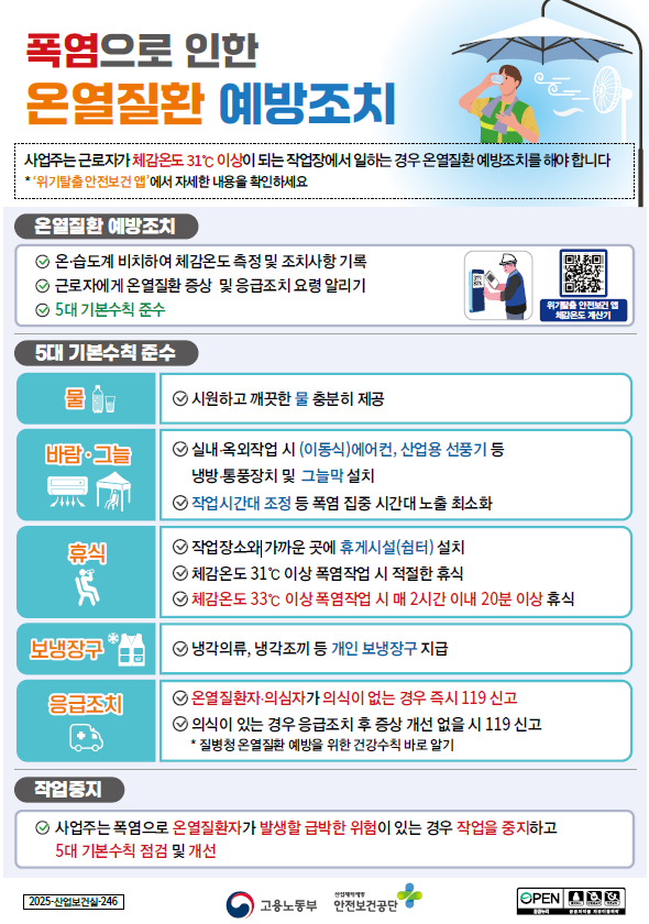 폭염으로 인한 온열질환 예방 관련 공유드리오니 첨부파일 확인하시고 업무에 참고하시기 바랍니다.